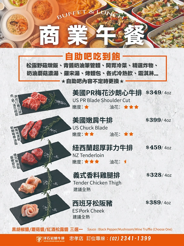 我們無限供應現場烹調的義式燉飯與義大利麵,搭配兩款例湯、風味開胃菜、香脆炸物,以及冰涼透心的飲品,讓味蕾在每一刻都被滿足。最後再來一支醇厚濃郁的霜淇淋,為這場豐盛饗宴劃下最甜美的句點!